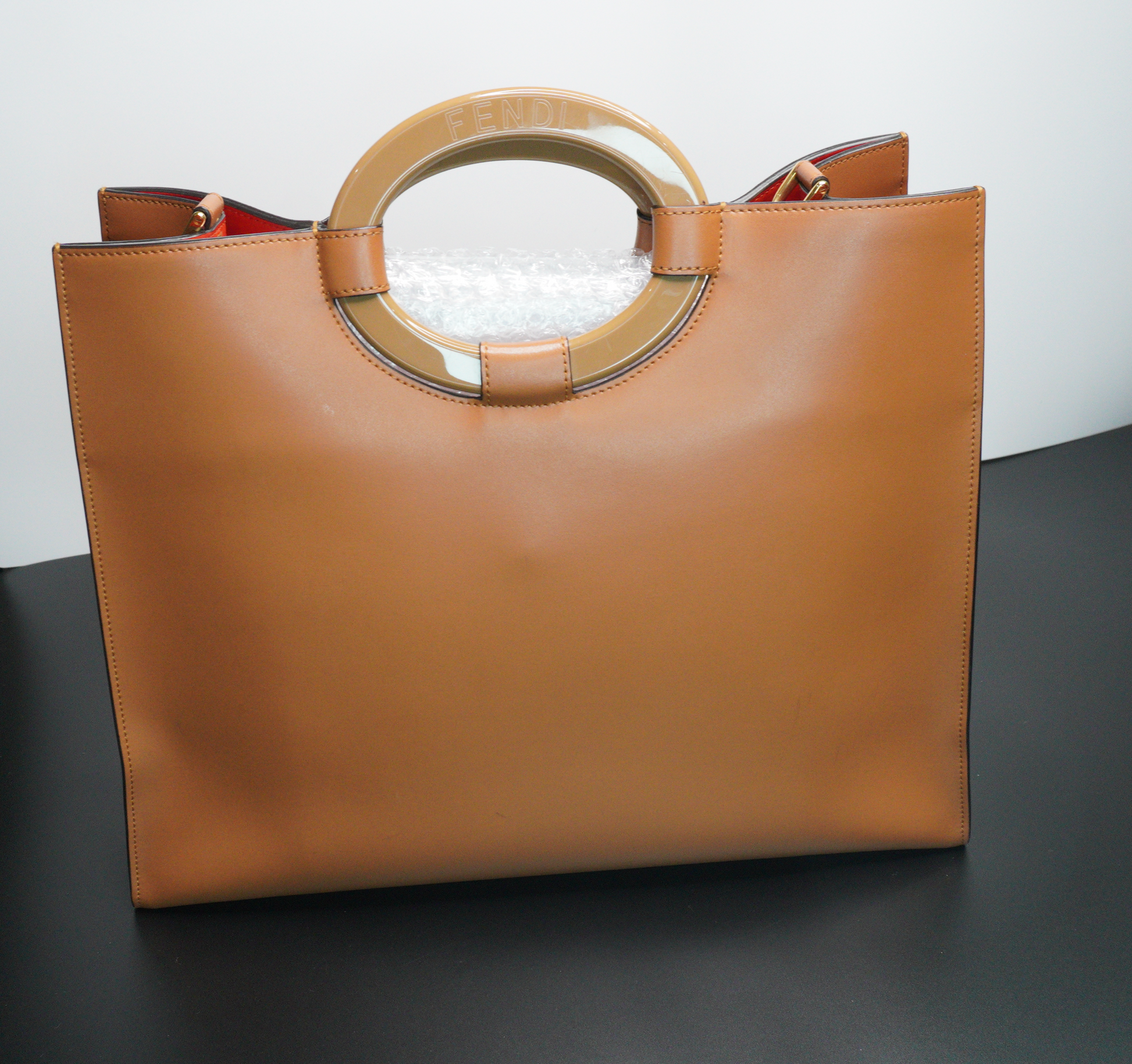 Fendi Runway Shopper Tote Bag in Tan Calfskin Leather