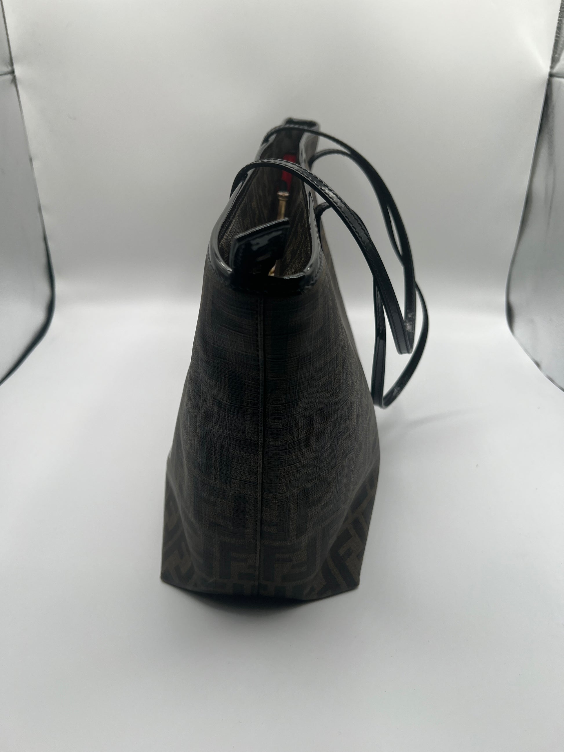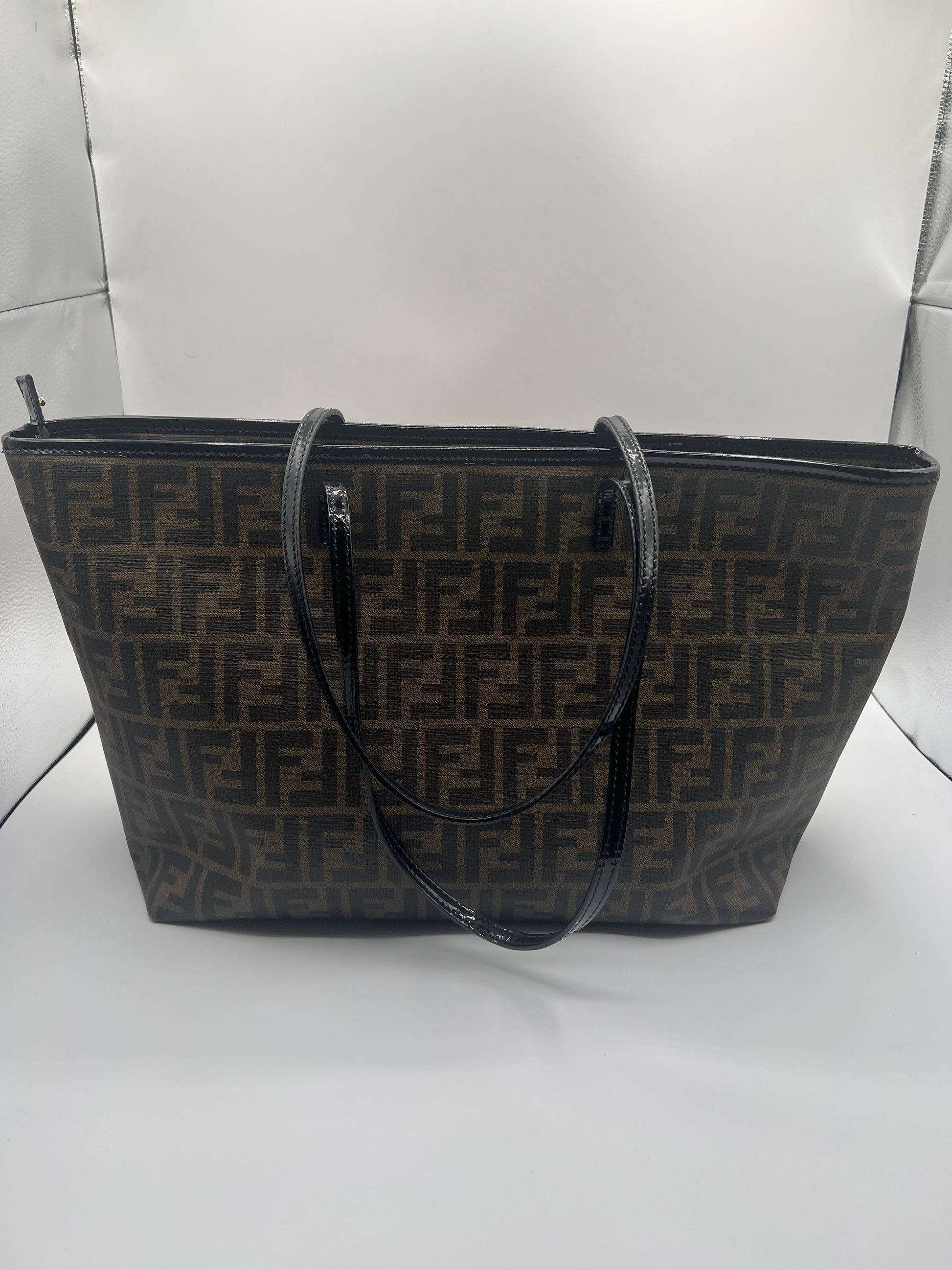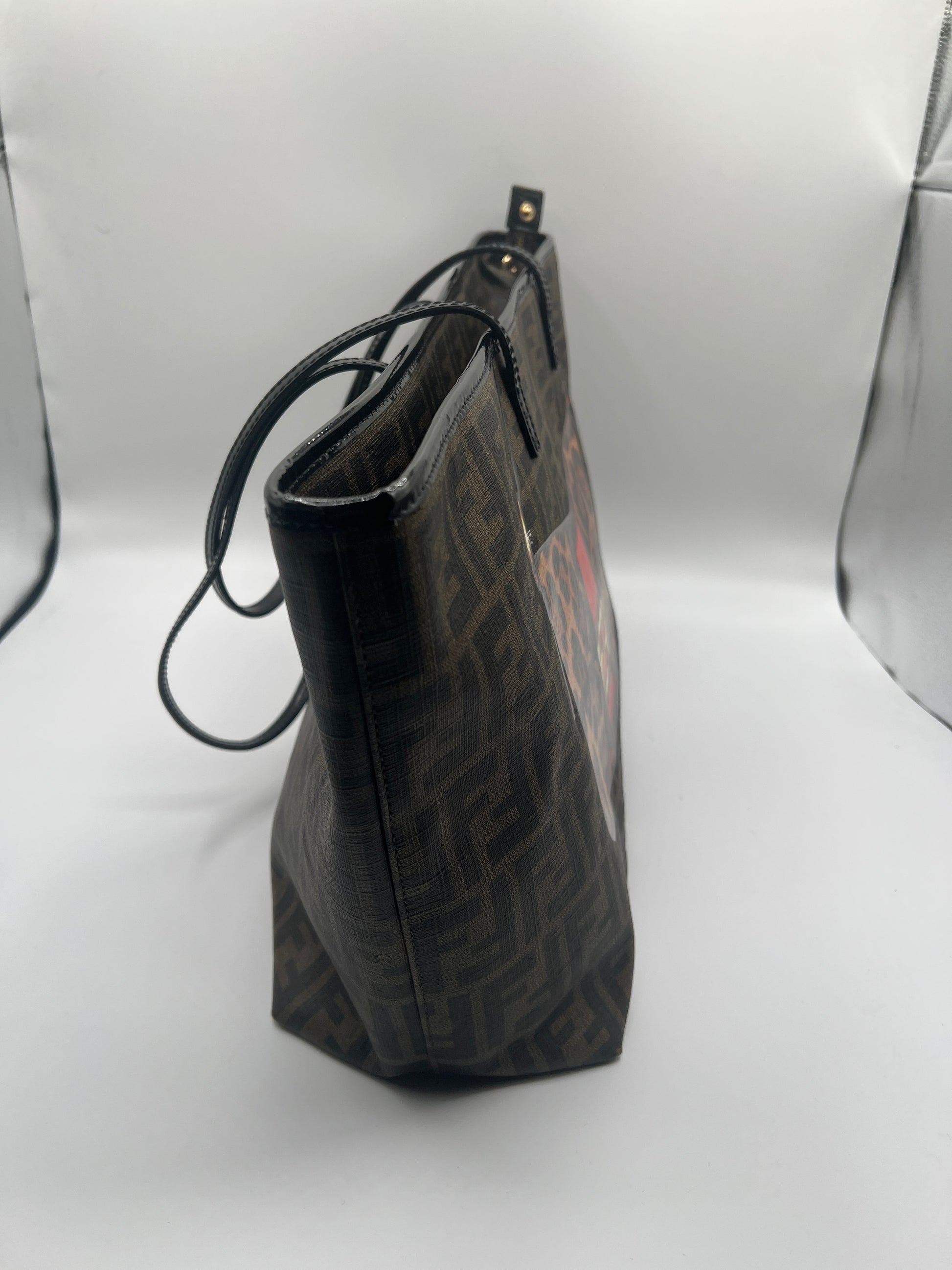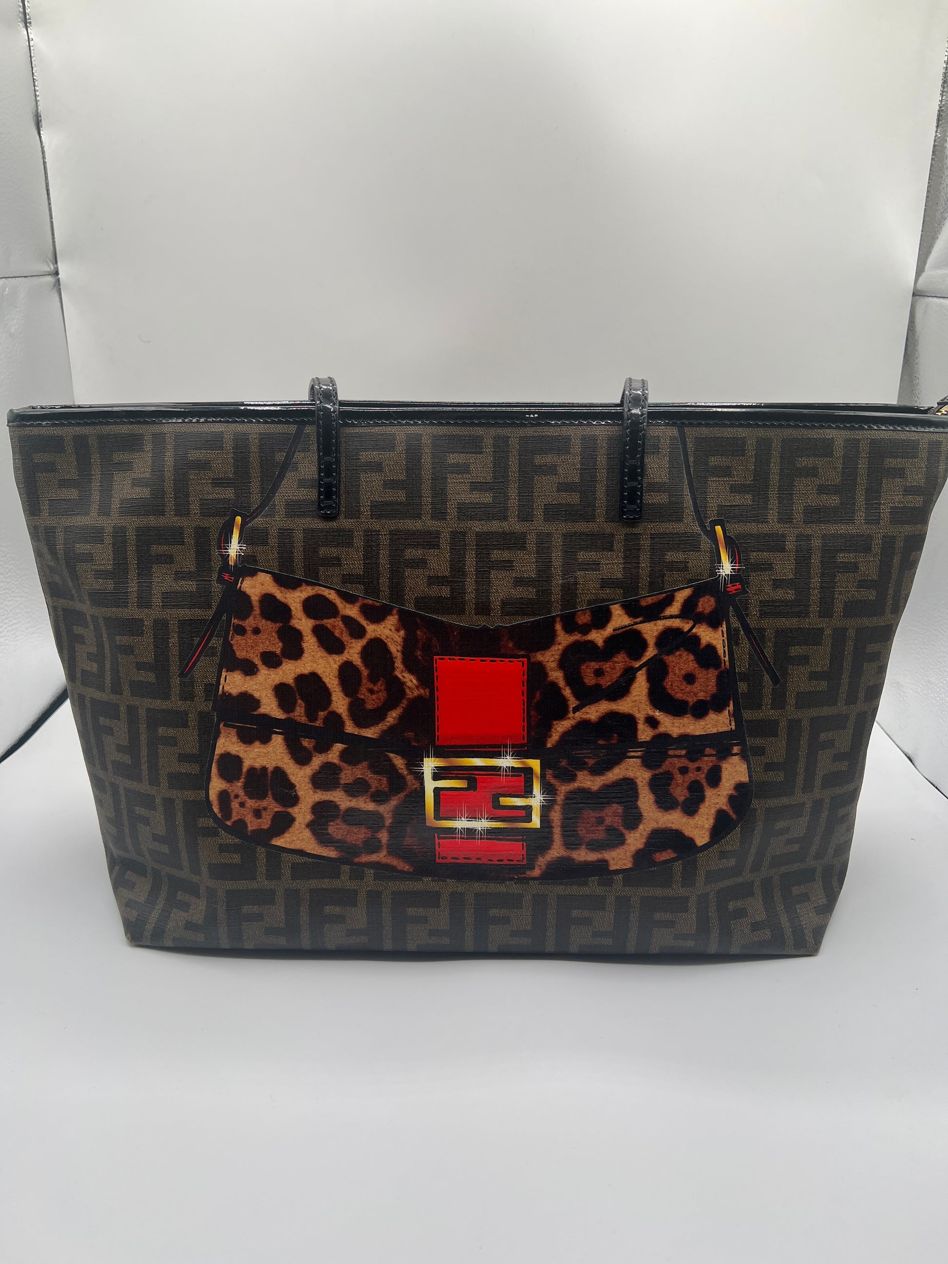 Fendi Zucca Spalmati Roll Tote with Leopard Mini Baguette Accent