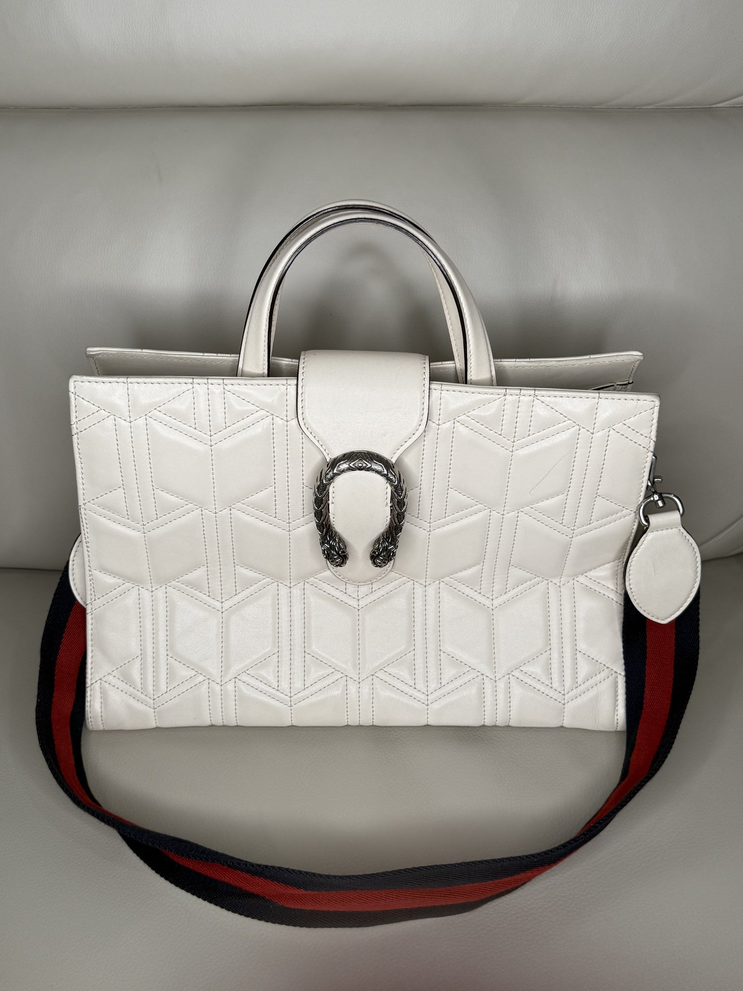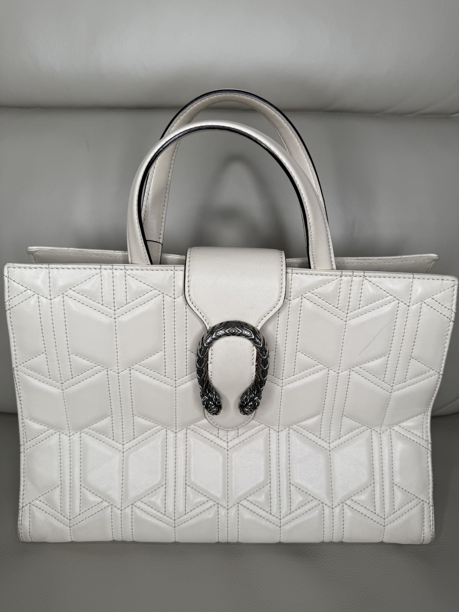 Gucci Dionysus Quilted 2-Way Tote Bag in Ivory Leather