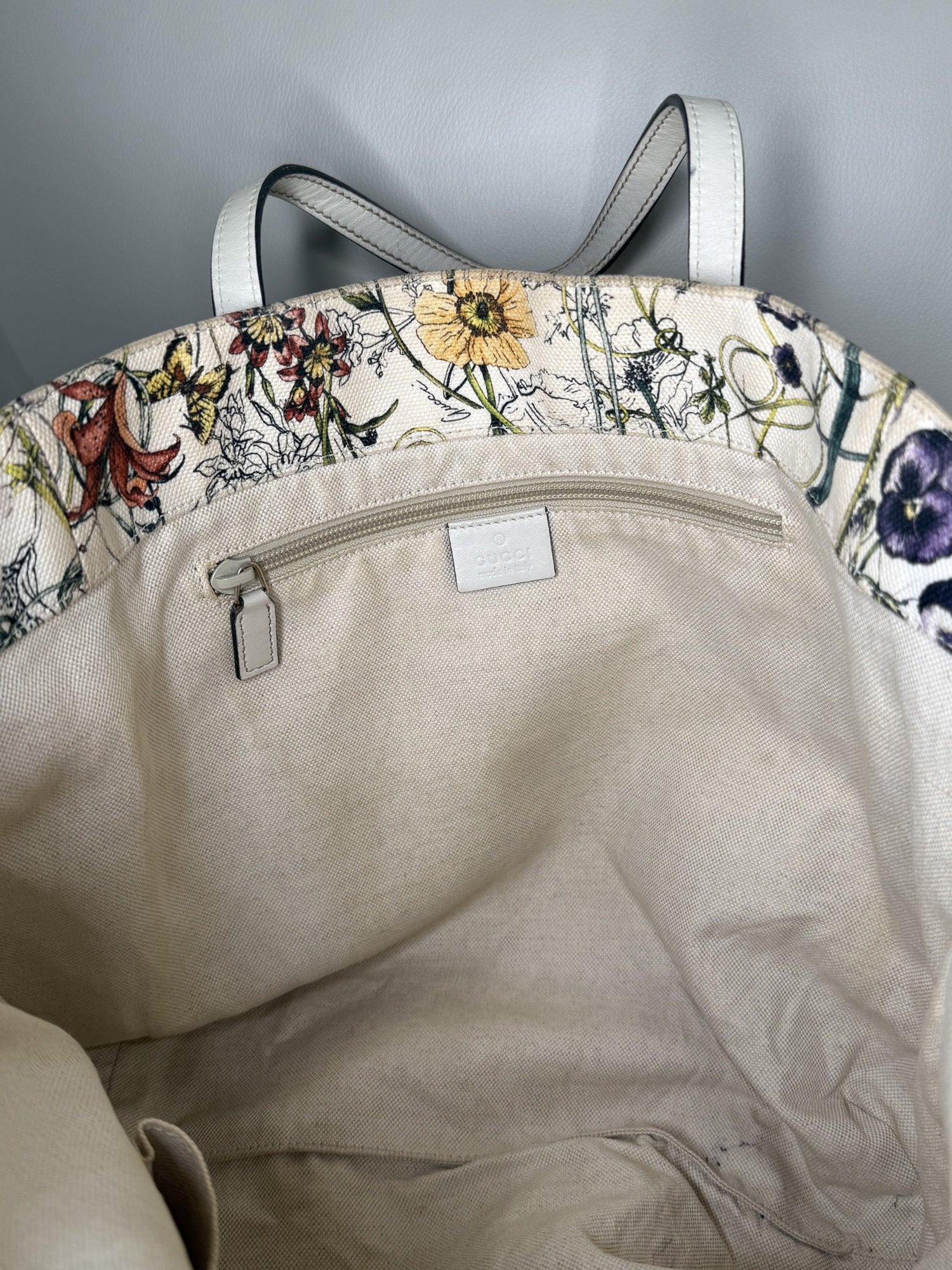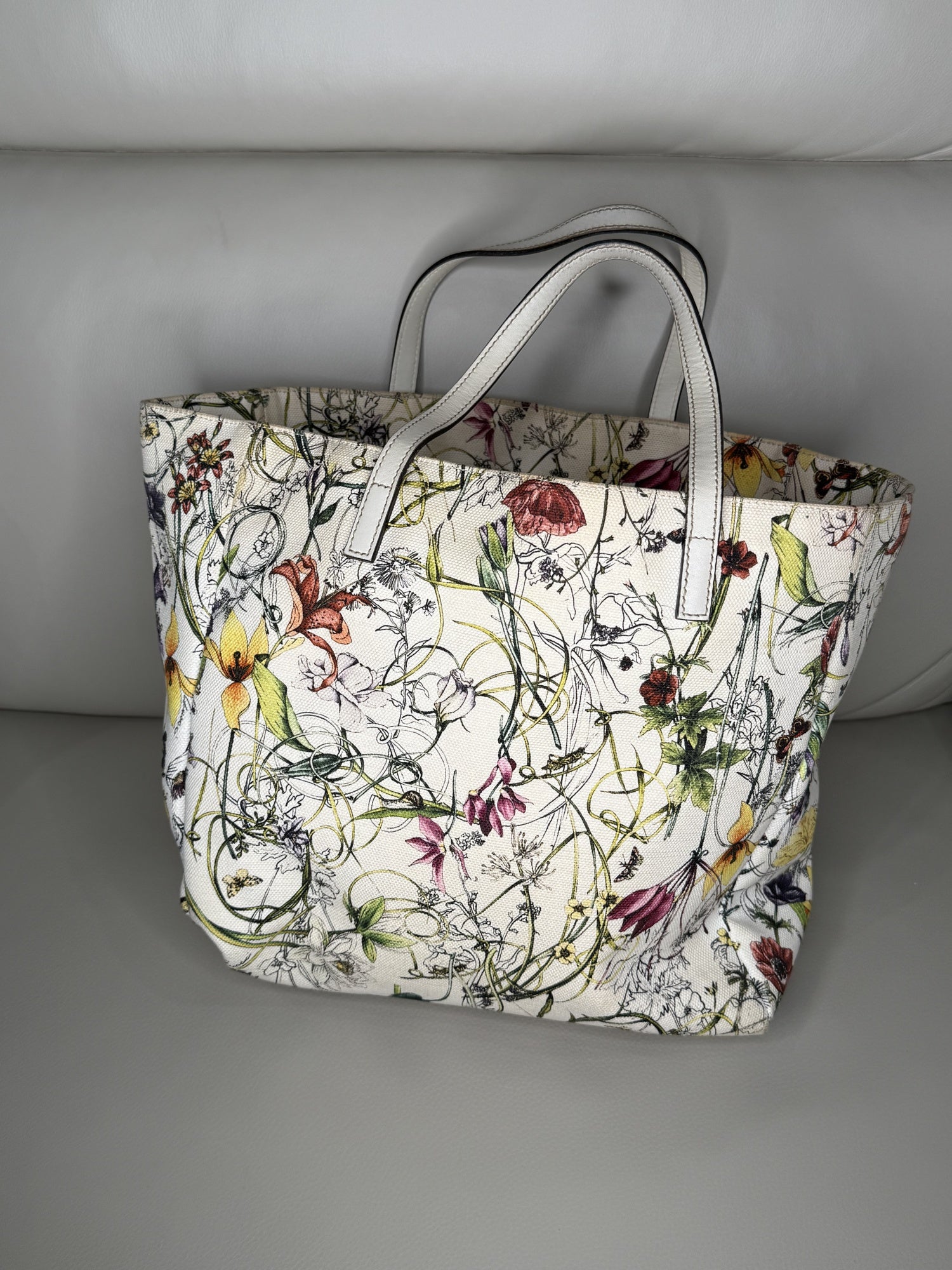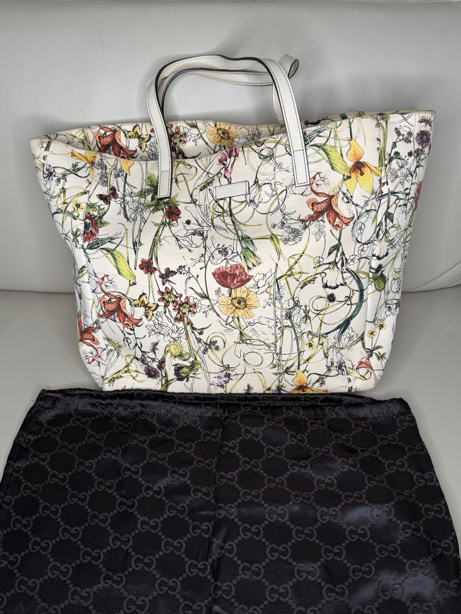 Gucci Flora Tote Bag – White Canvas with Multicolor Floral Print