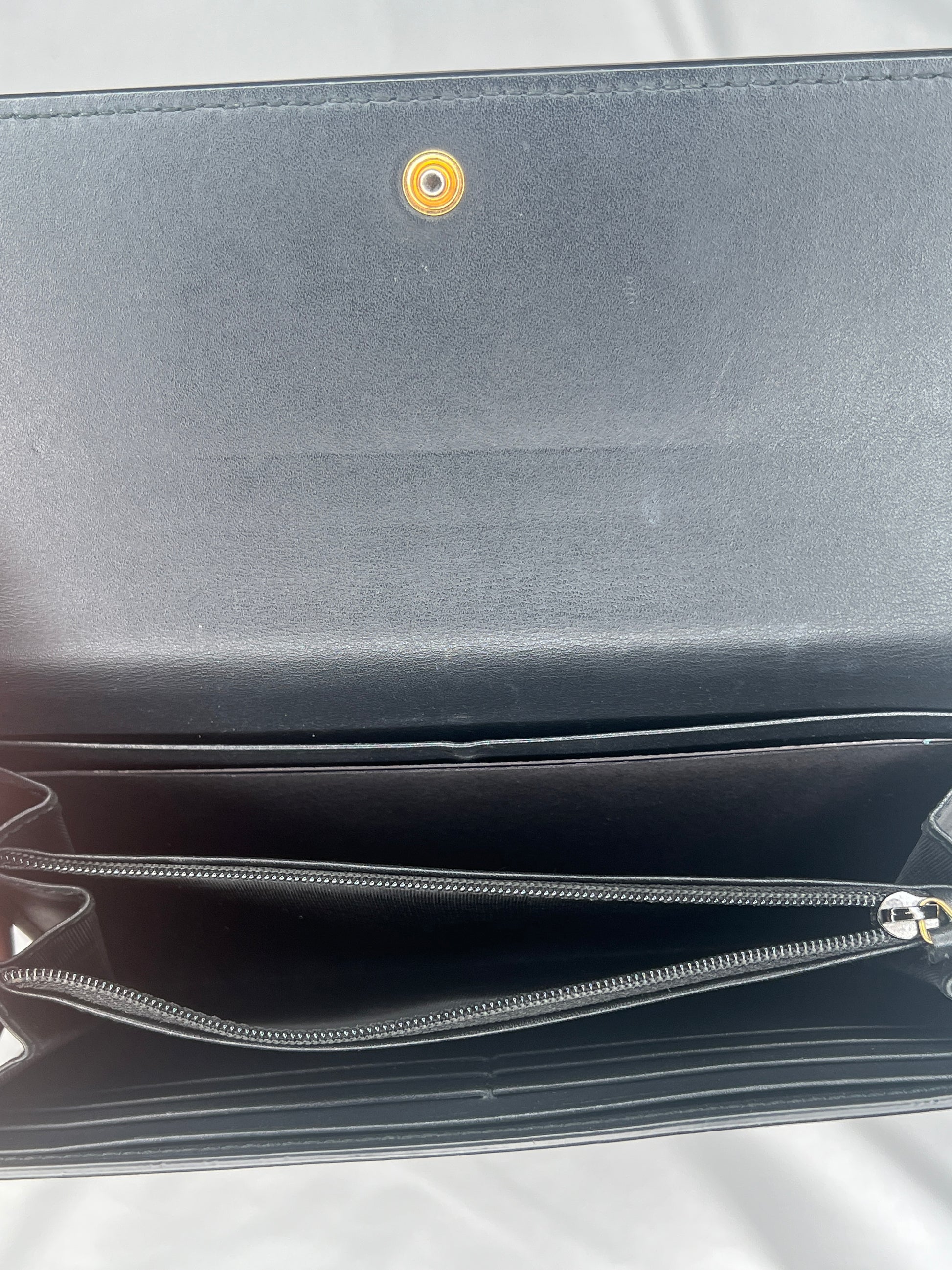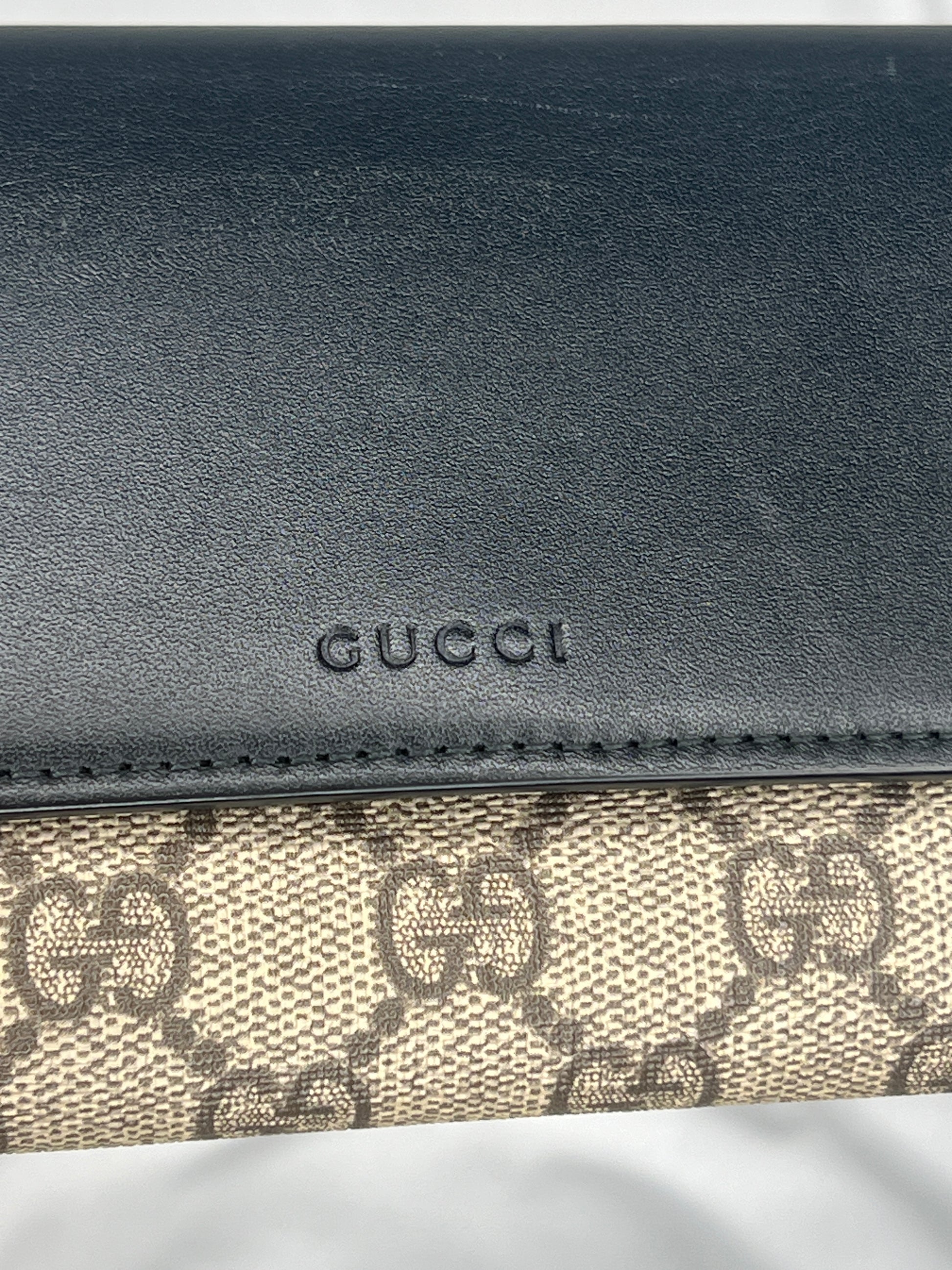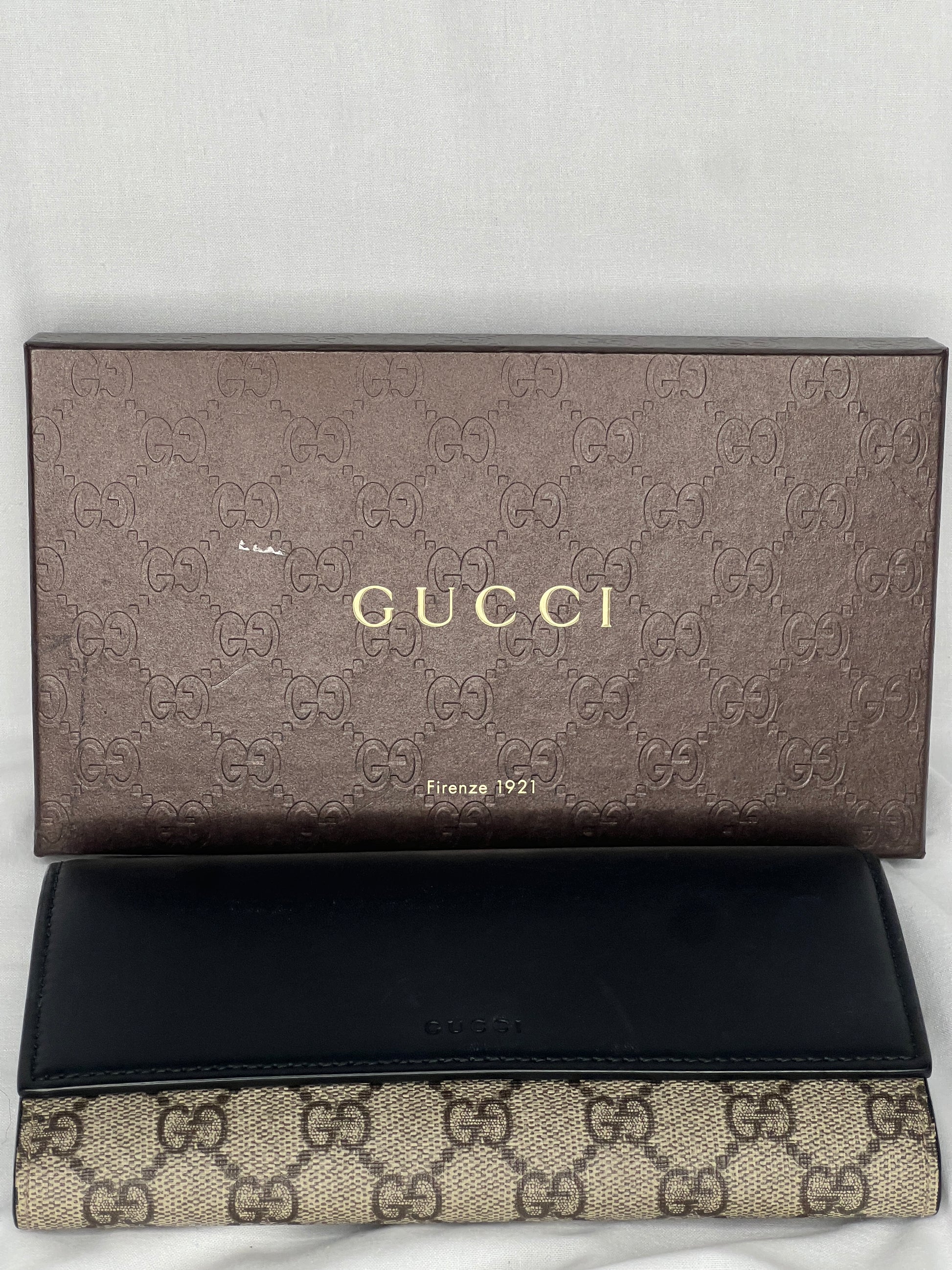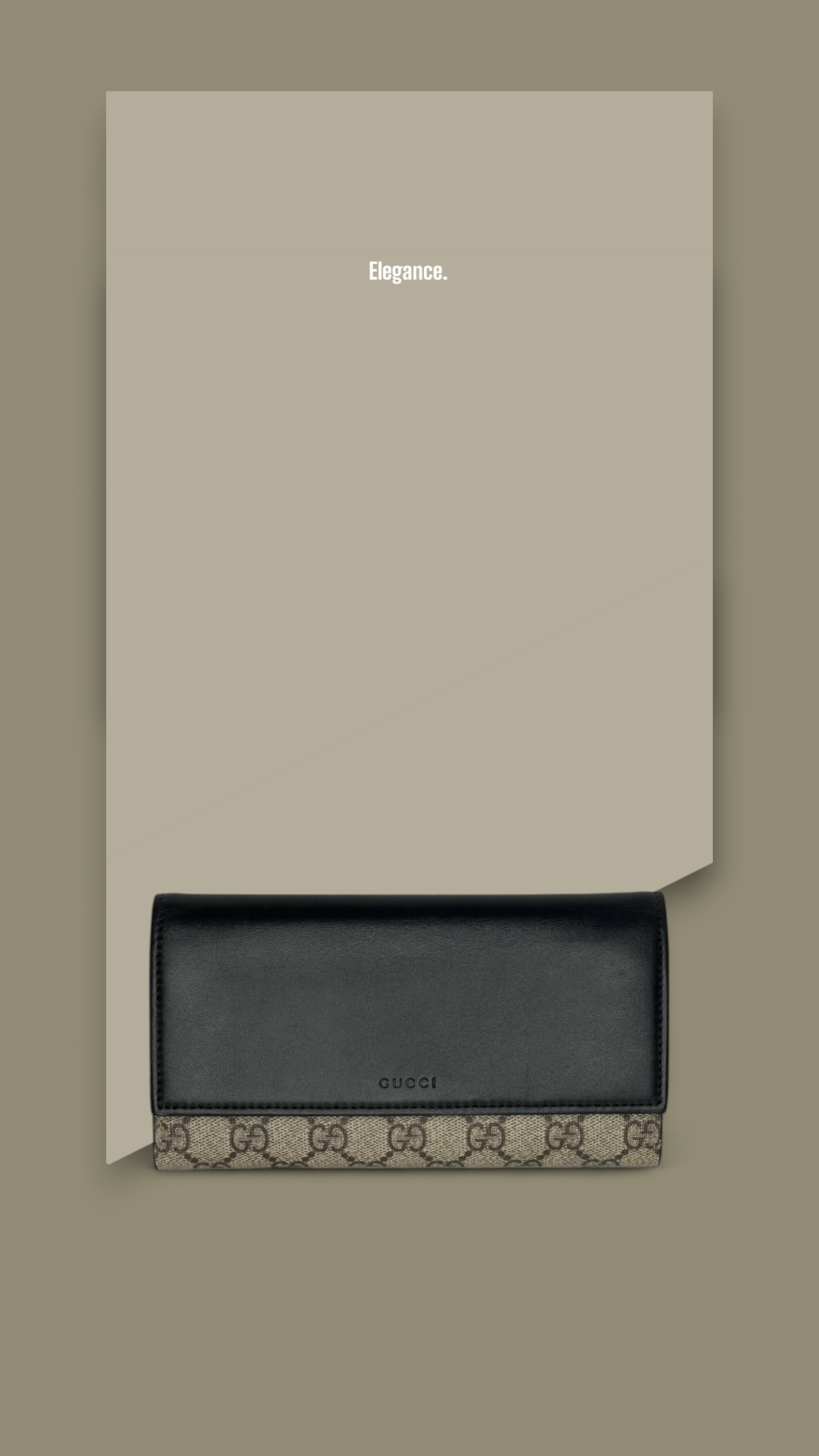 A timeless blend of luxury and function, this Gucci GG Supreme Continental Wallet features the iconic GG monogram canvas paired with smooth black leather. Its sleek, minimal silhouette offers elegant practicality, ideal for organizing cards, cash, and essentials with refined sophistication.