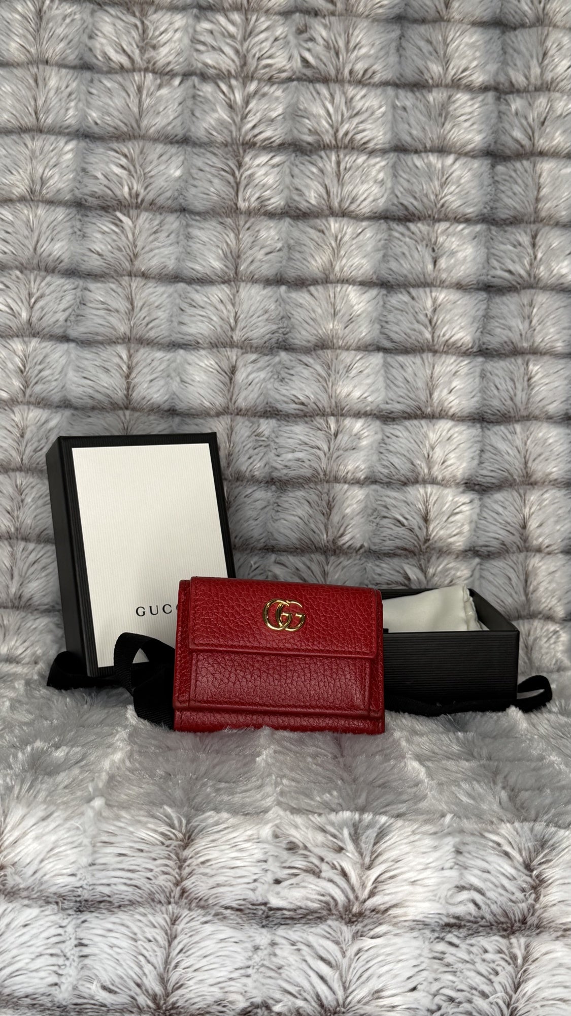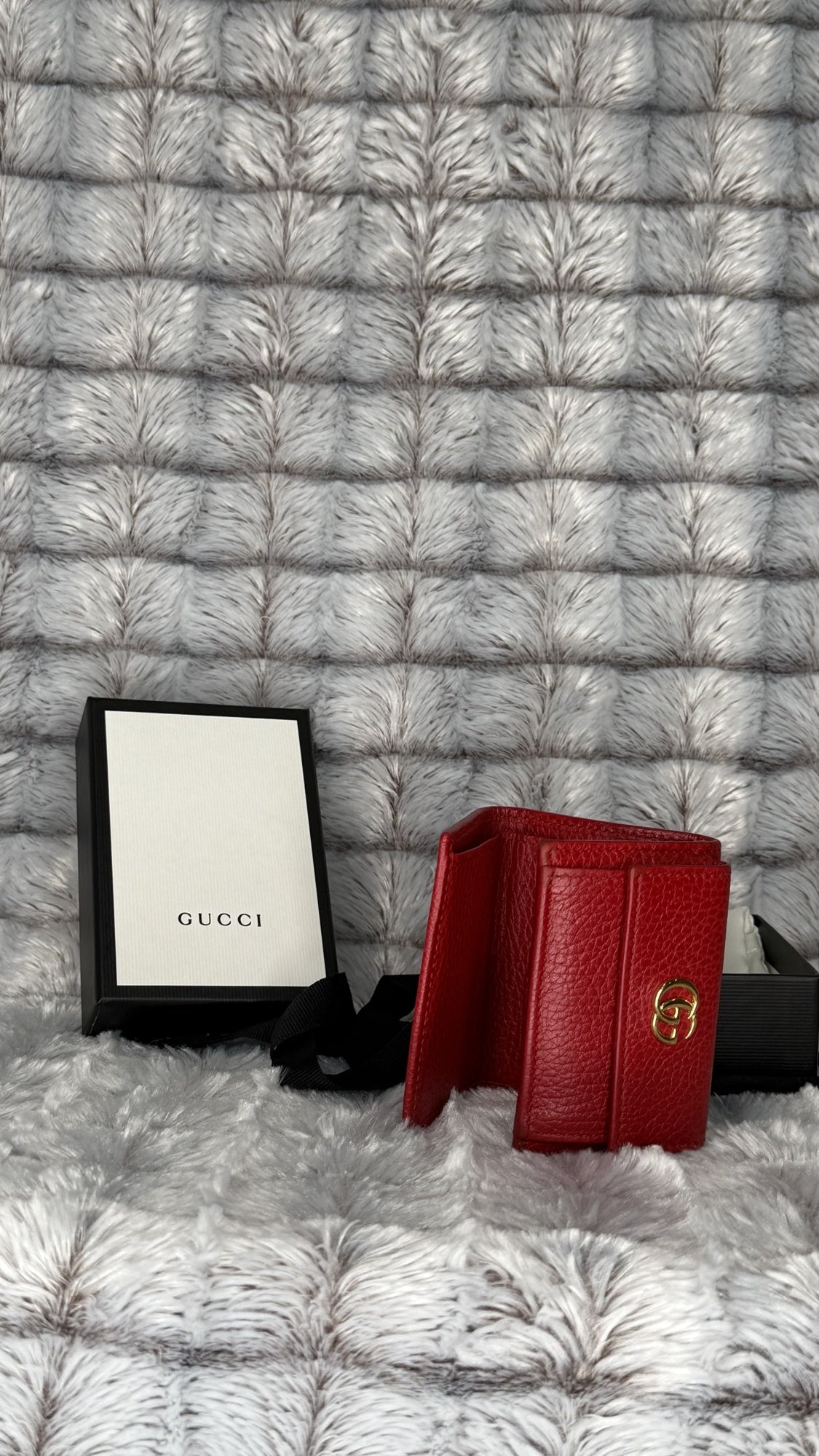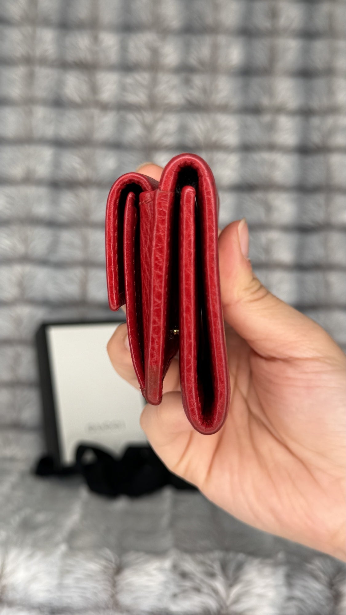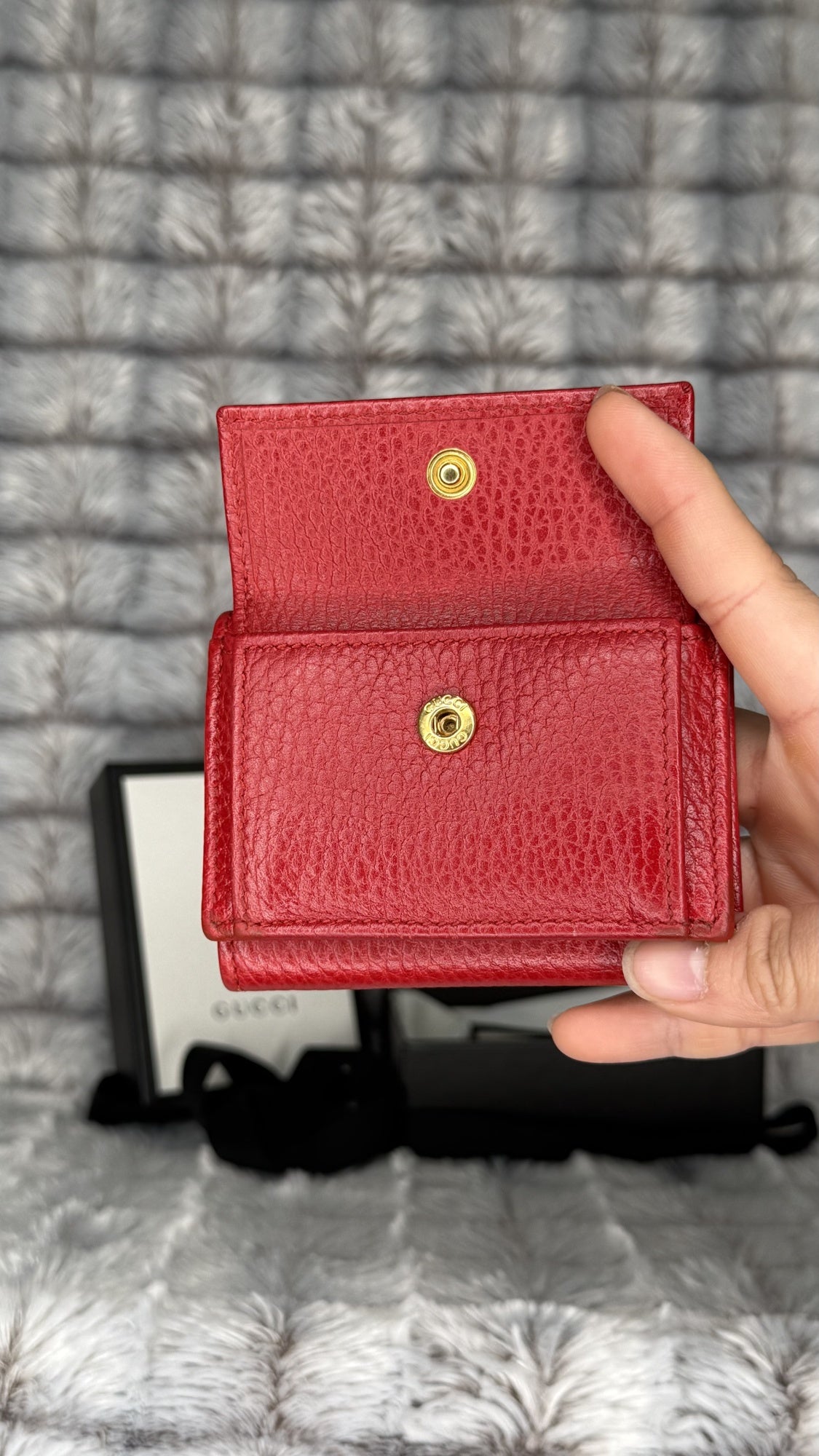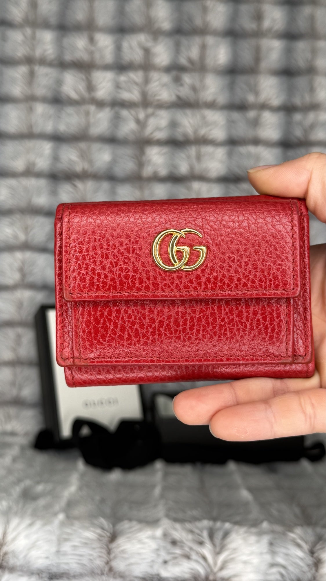Gucci Marmont Tri-Fold Compact Wallet – Red Leather