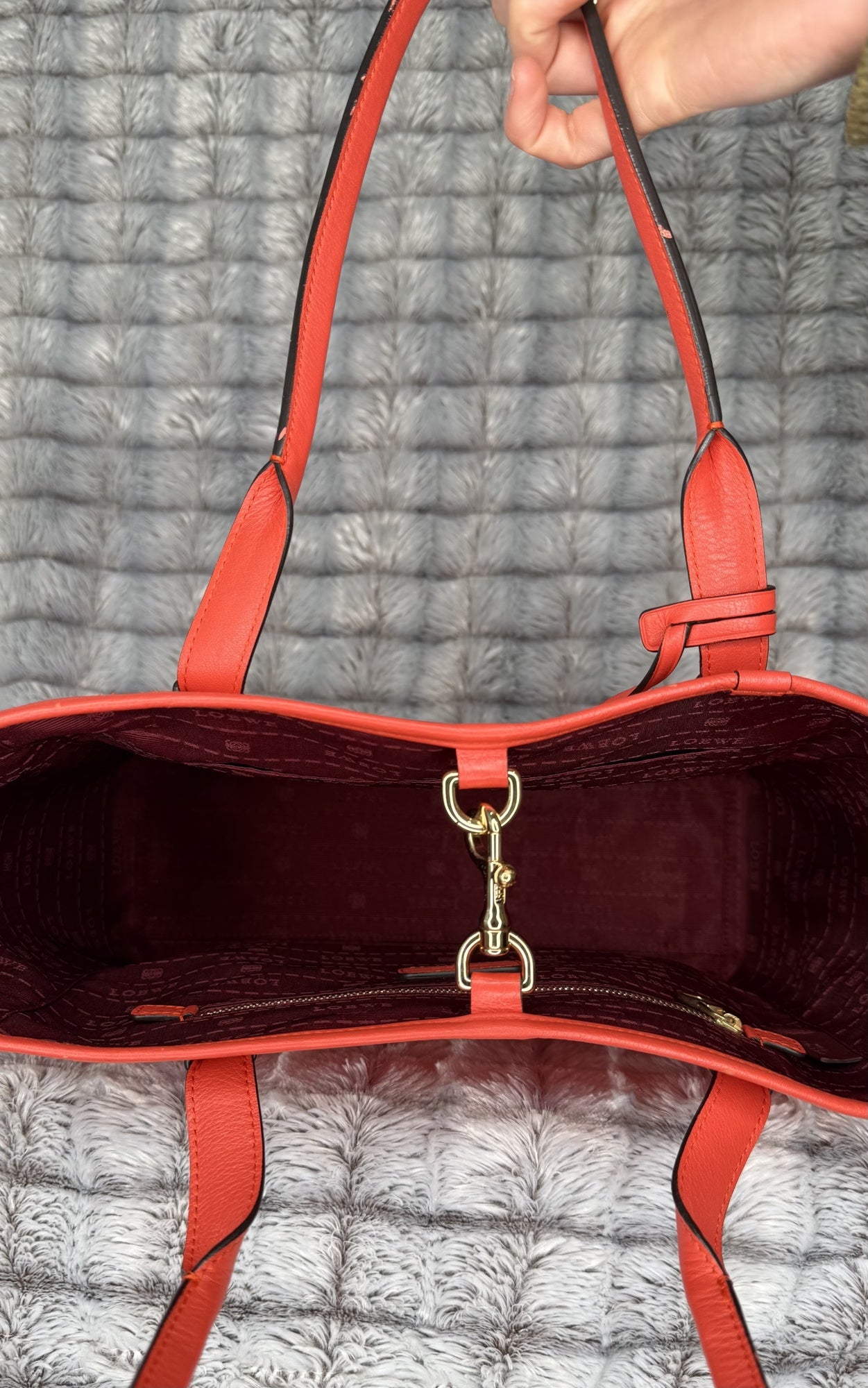 Refined, roomy, and radiant in red—the Loewe Heritage Leather Tote is a statement of quiet luxury and modern function. Made with premium pebbled leather, this structured carryall embodies understated elegance with a spacious interior, perfect for daily use or weekend escapes. Dual top handles and side compartments enhance its practicality, while the clean silhouette keeps your look polished from day to night.