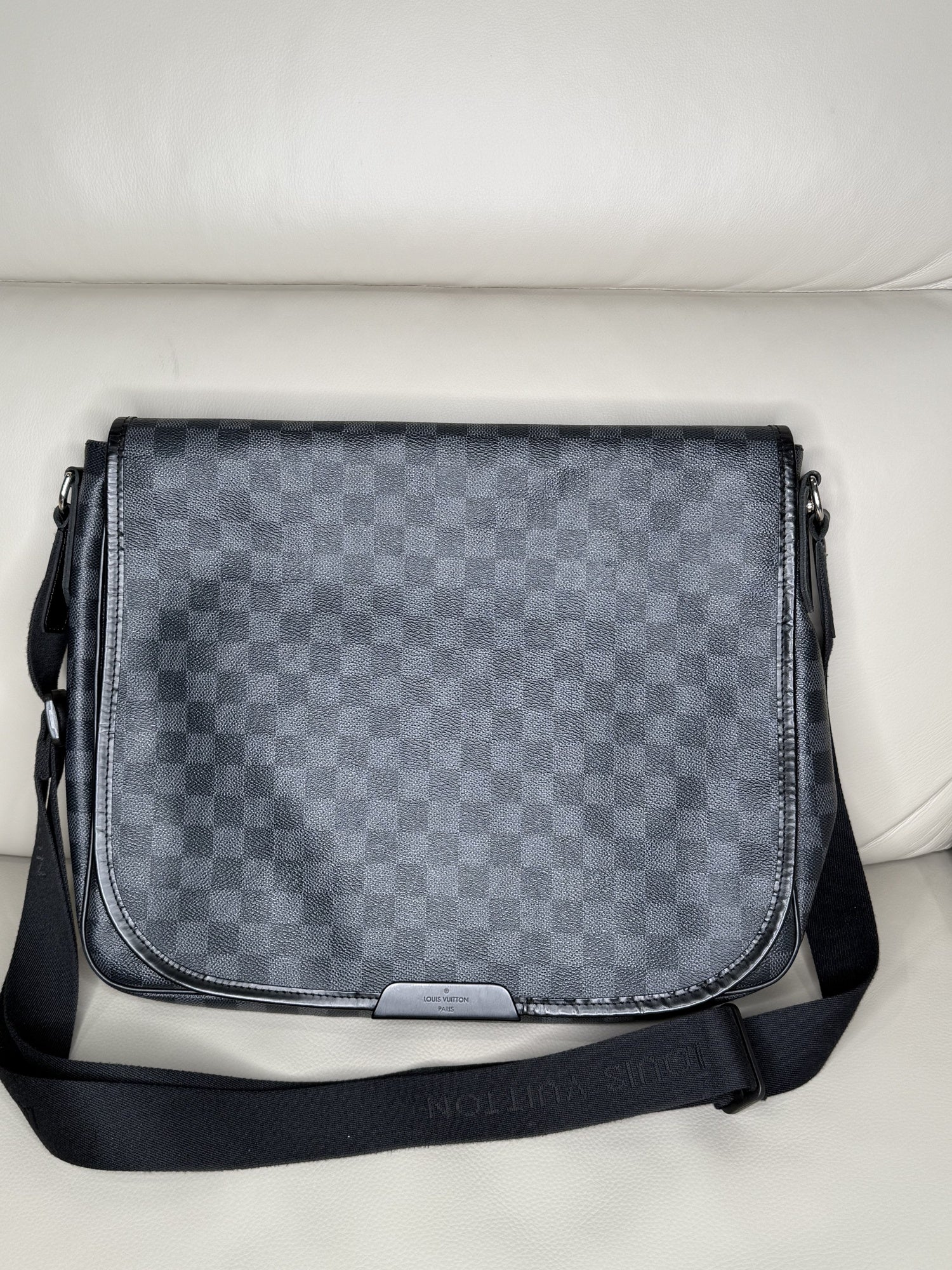 - Material: Damier Graphite Coated Canvas with Black Leather Piping