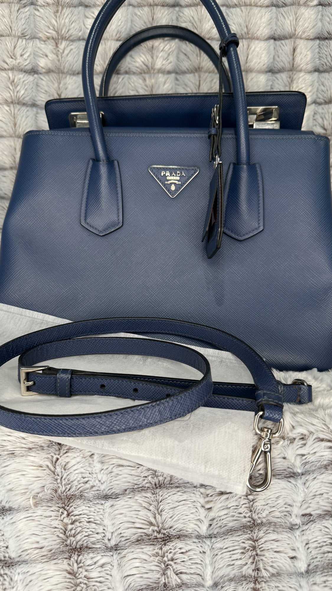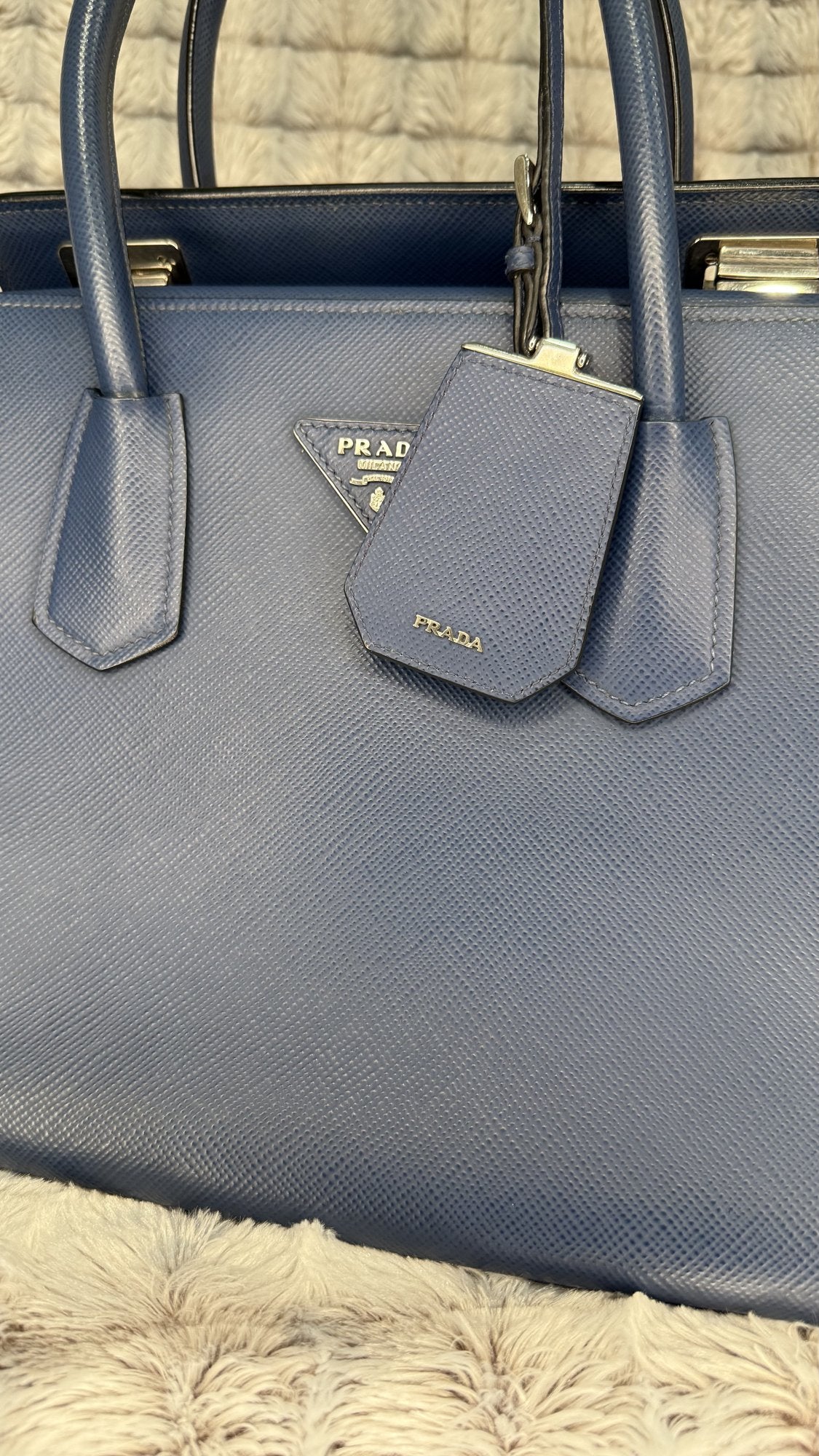 Prada Saffiano Cuir Double Tote – Bluette