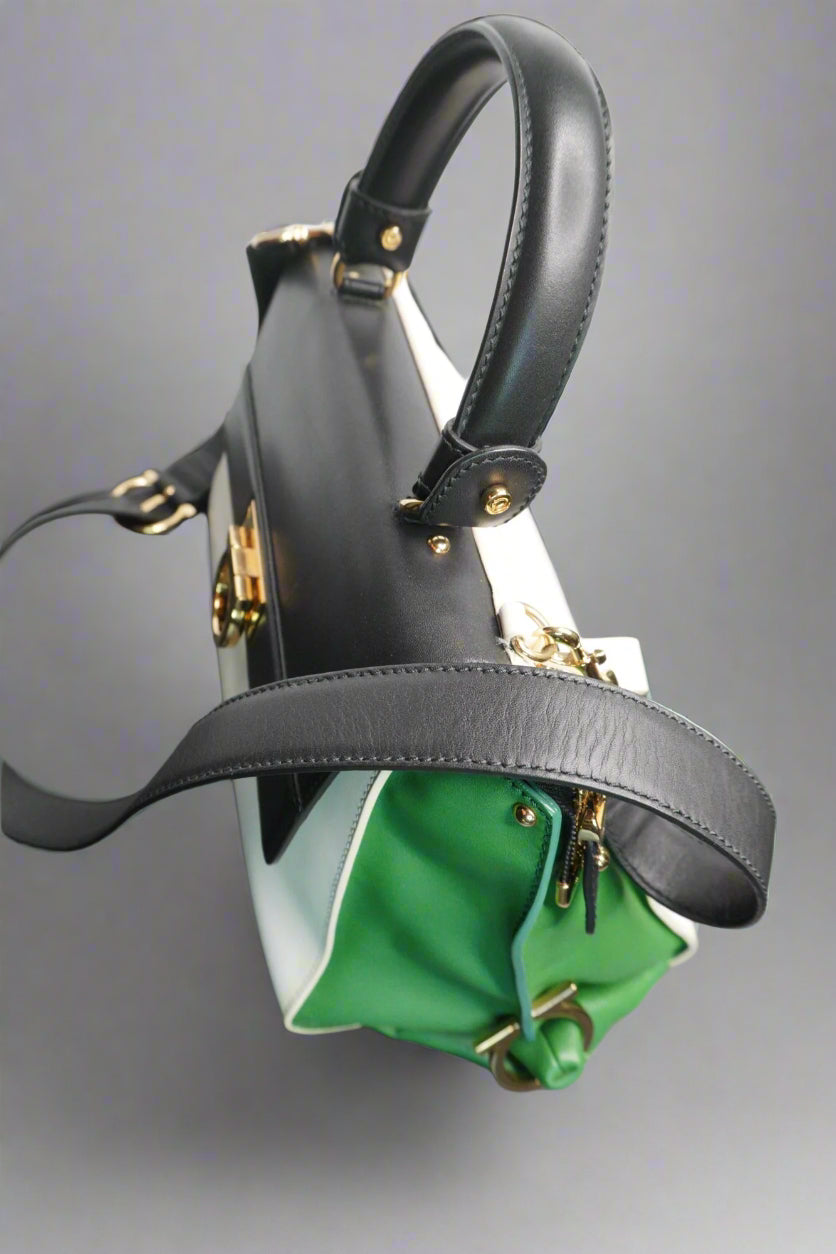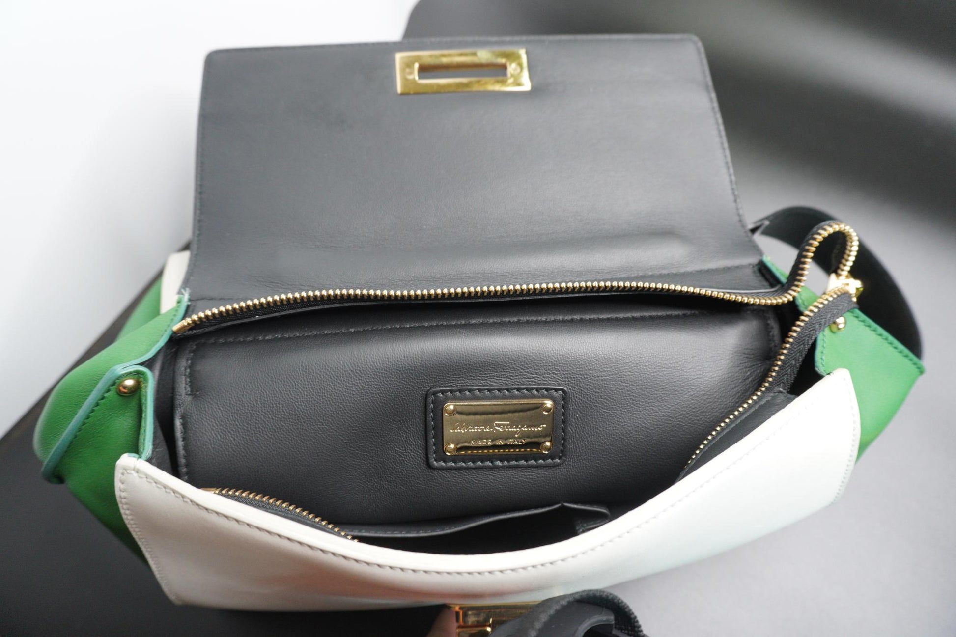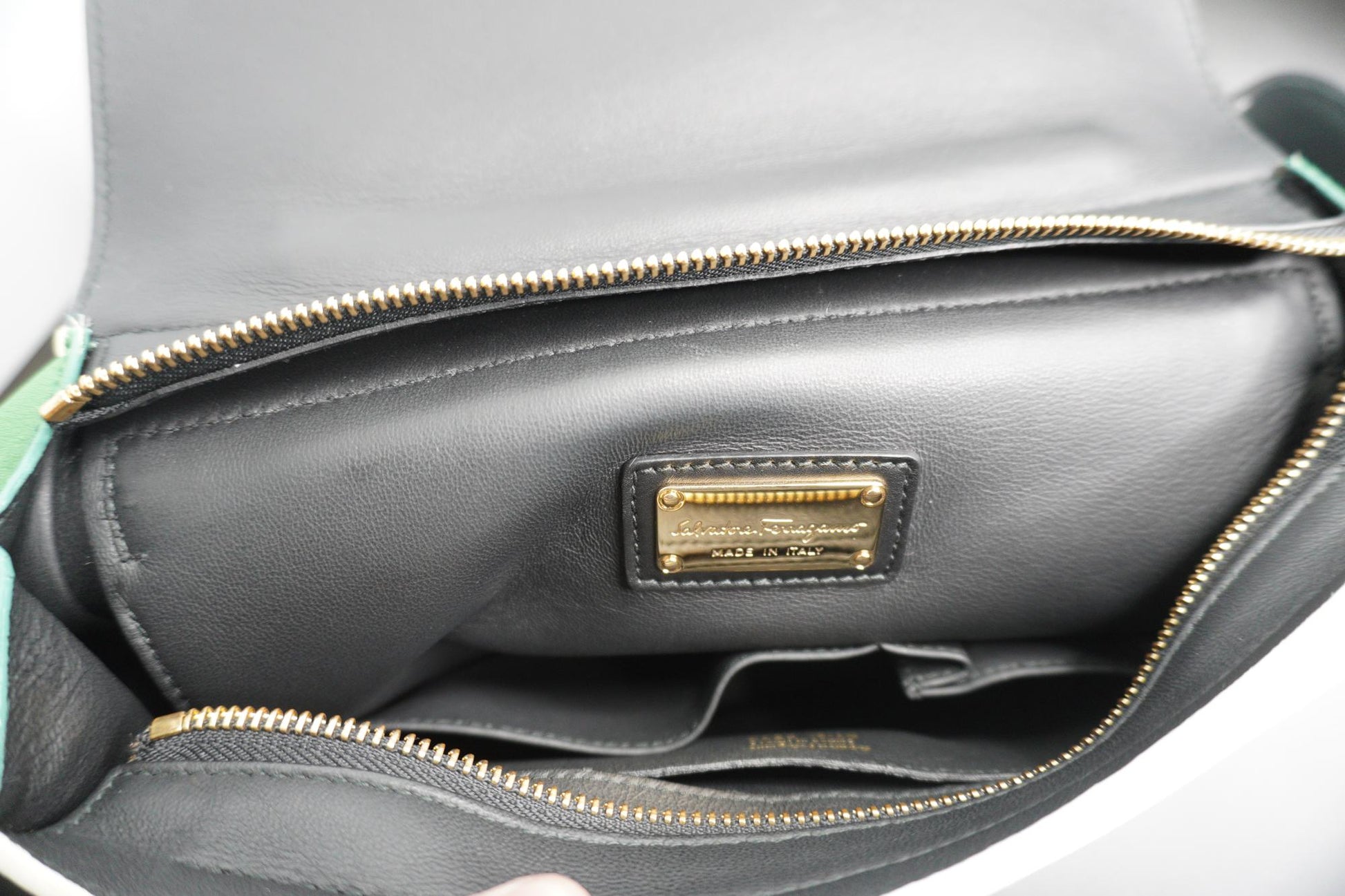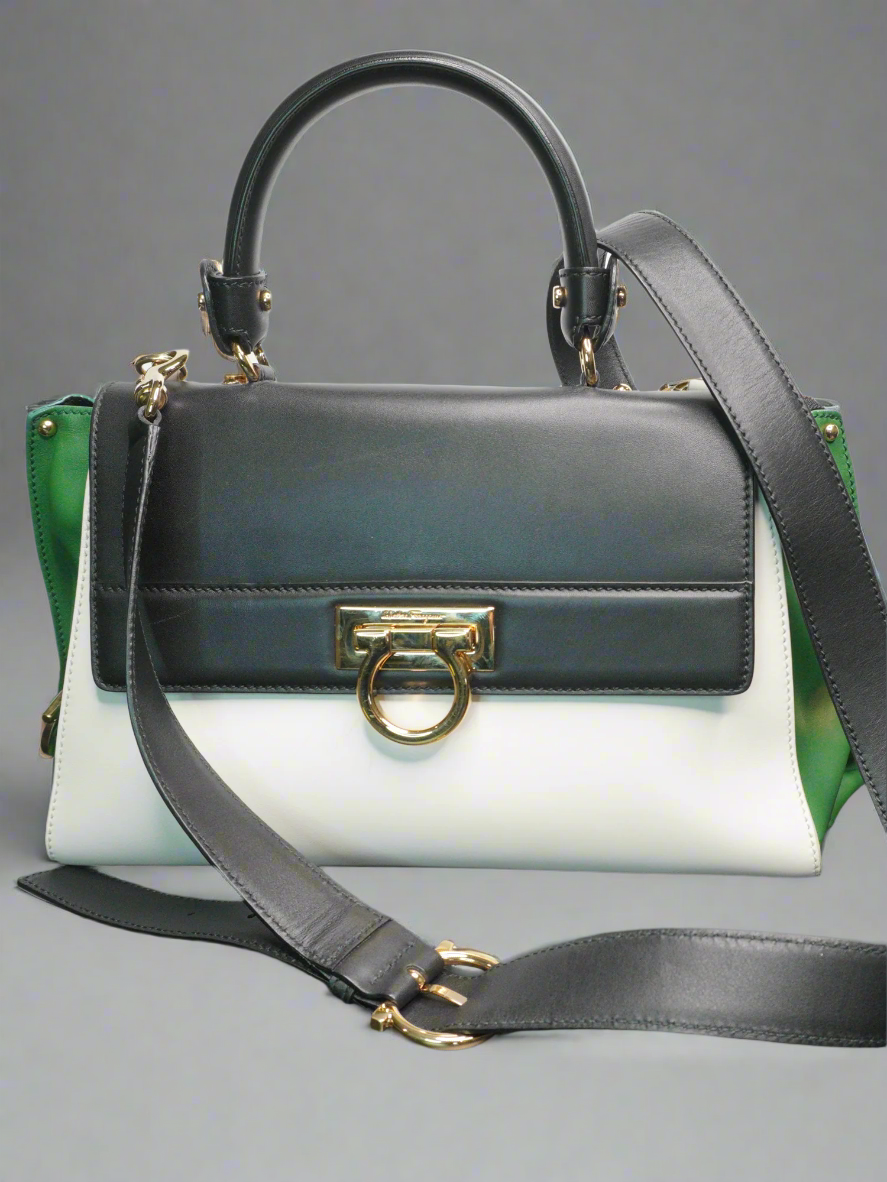 Salvatore Ferragamo Sofia Small Satchel – Black/White/Green