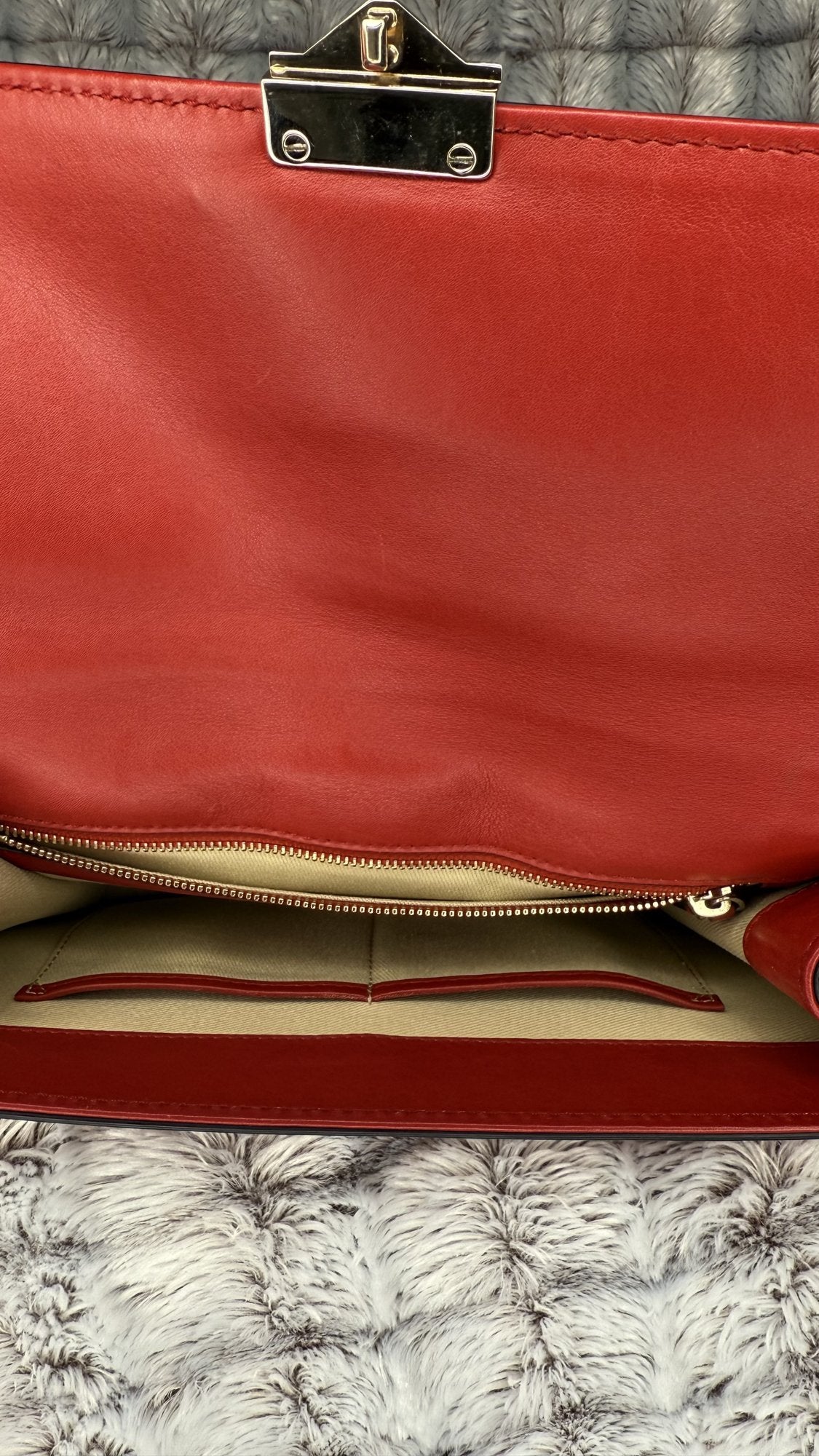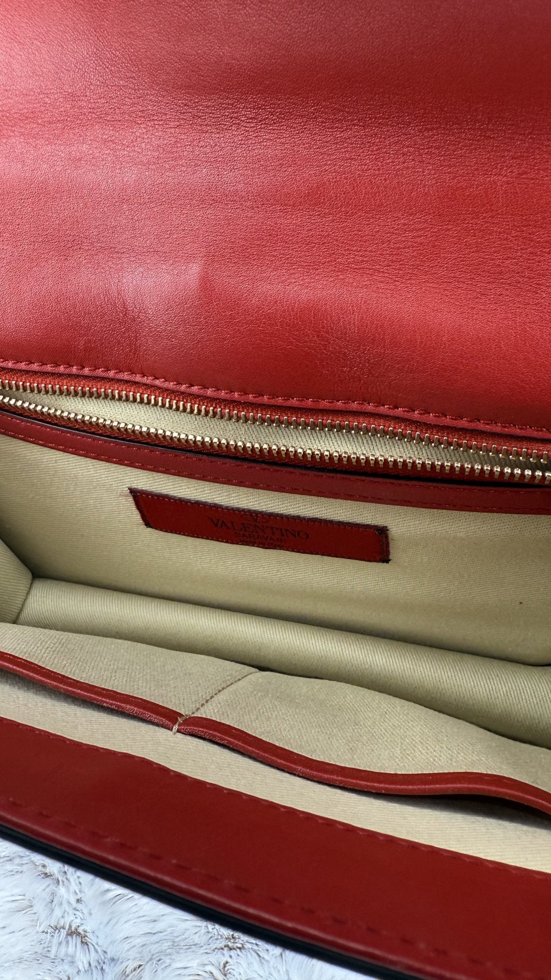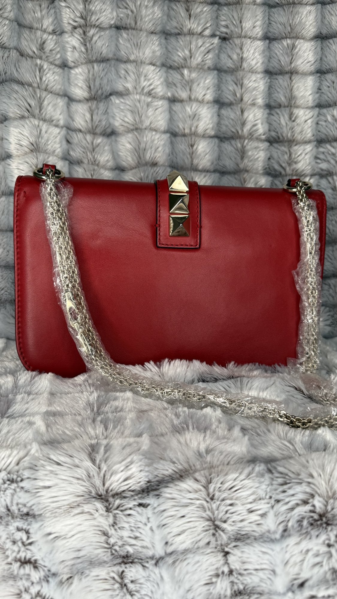 Valentino Garavani Vitello Medium Glam Lock Rockstud Flap Bag – Red