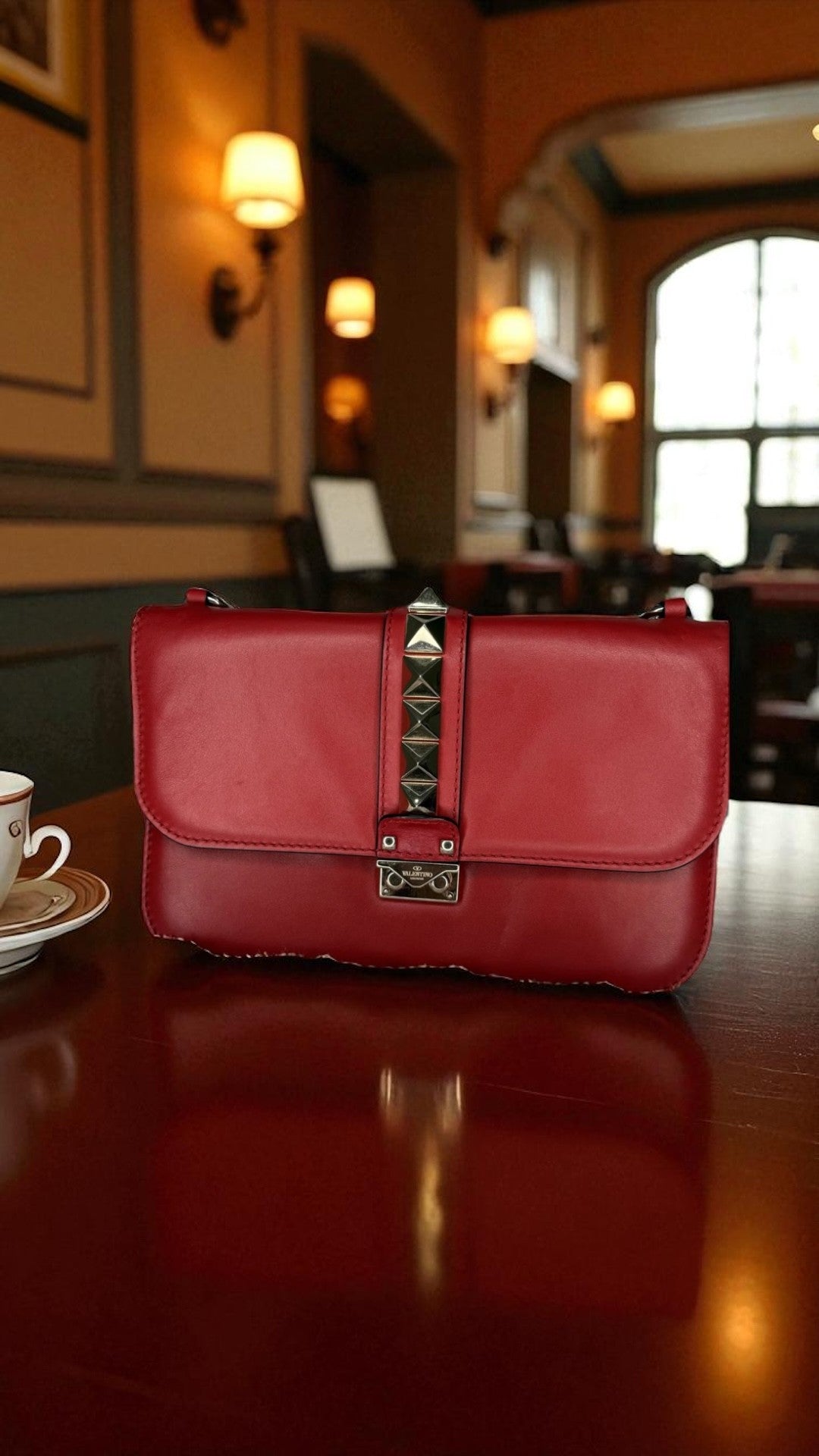 Turn heads with this Valentino Garavani Medium Glam Lock Bag in bold red Vitello leather, adorned with the brand's signature pyramid Rockstuds and luxe gold-tone hardware. The structured silhouette, flap closure, and sliding chain strap make it versatile enough to wear as a shoulder or crossbody bag. A striking yet timeless piece, it’s perfect for adding edge and elegance to both day and evening outfits.